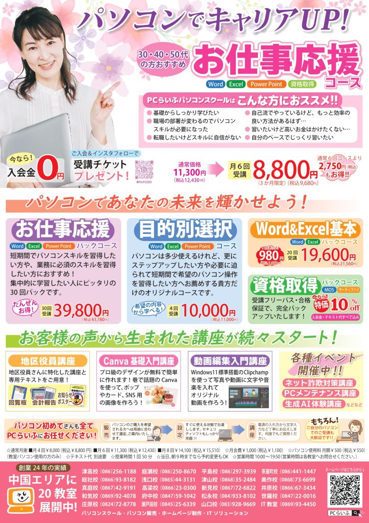 PCらいふパソコンスクール美作校です!