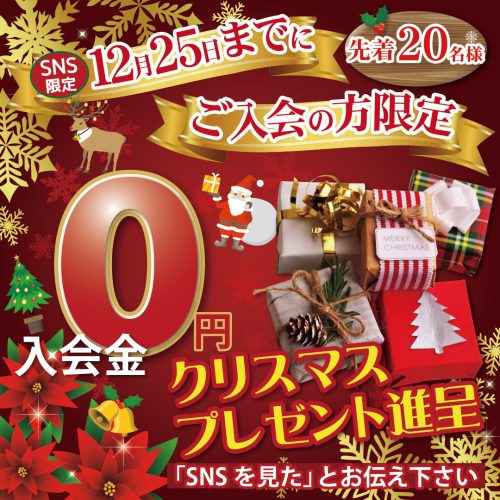 PCらいふのSNSをご覧になり12月1日~25日にご入会の方限定で入会金無料と