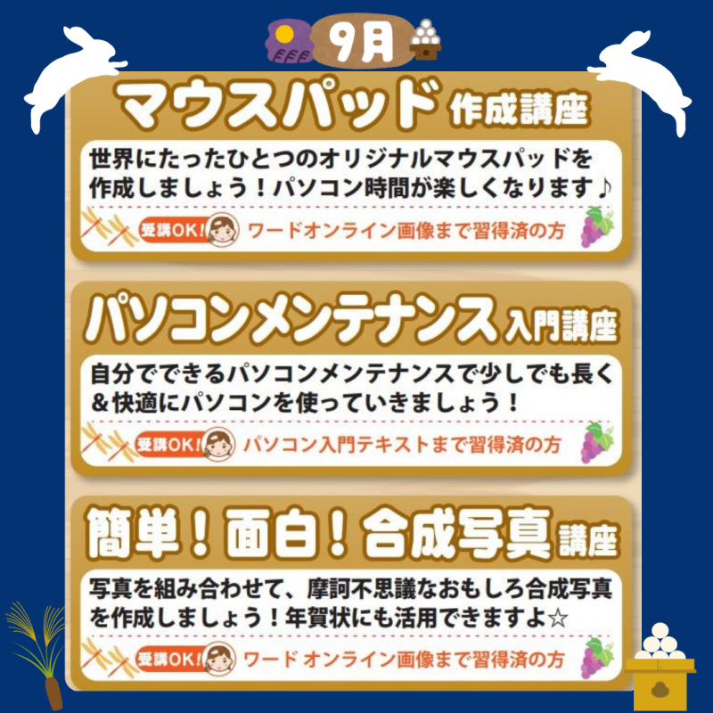 9月のおすすめ「マウスパッド作成講座」のご案内です😊