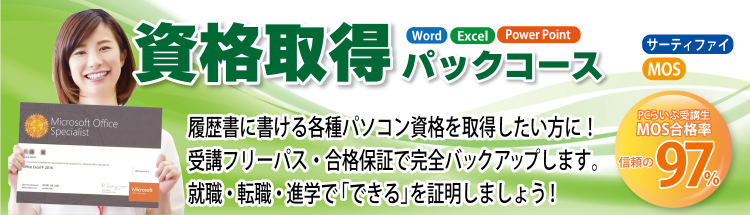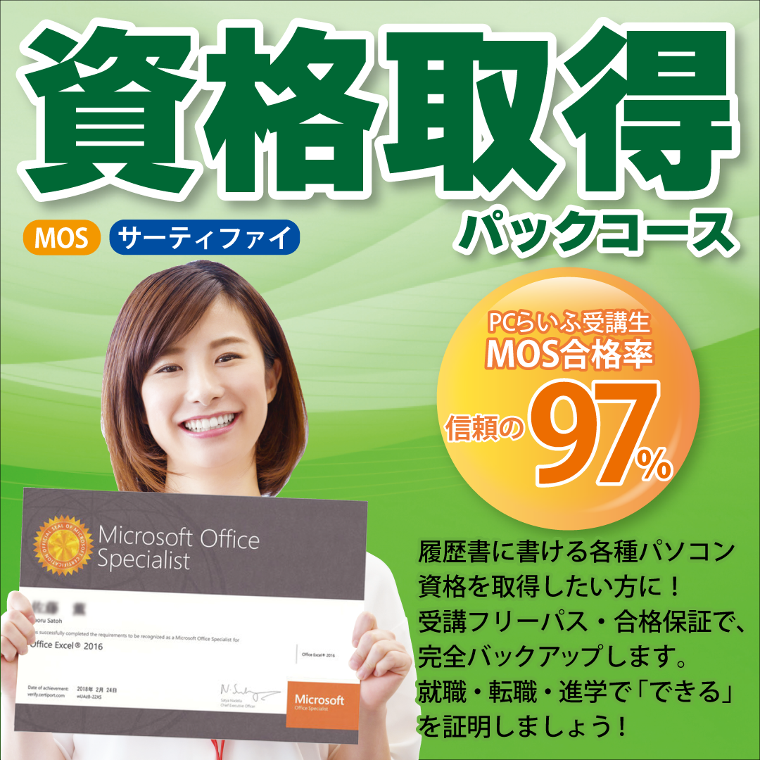 PCらいふパソコンスクール全校が、サーティファイ検定の試験会場となっています。