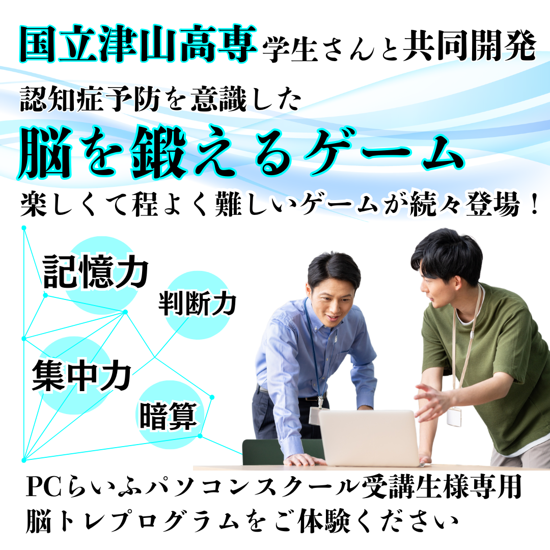 3/1(火)よりPCらいふパソコンスクール津山校がウエストランド内に移転いたしました。